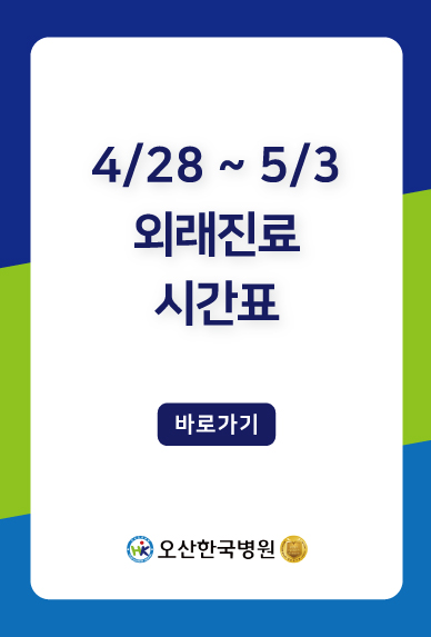 오산한국병원│주소 : 우)18144 경기도 오산시 밀머리로1번길 16 (원동, 오산한국병원)│대표전화 : 1566-3534│응급의료센터 : 031-378-5119